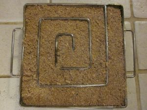 I put it in my cabinet smoker, but that is just for convenience and is not necessary. Stir the salt several times so that it all gets a nice amount of flavor. Smoke the salt until it reaches the desired color. I smoked it for about 24 hours.