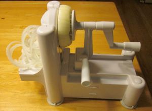 For the crispy onion strings I have a nice little gadget that cuts them. They should be deep fried at about 400° for a few seconds until they are golden. They were tasty, but didn’t come out exactly as I hoped. I might try putting a little batter on them next time.