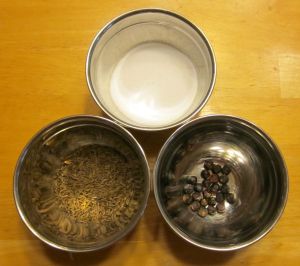 The salt, caraway, and juniper berries are measured according to weight. My vegetables weighed 7 1/2 lbs so I added 7 1/2 tsp salt, 3 3/4 tsp caraway seeds, and 23 juniper berries. Mix with the cabbage mixture and allow to sit for 30 minutes.