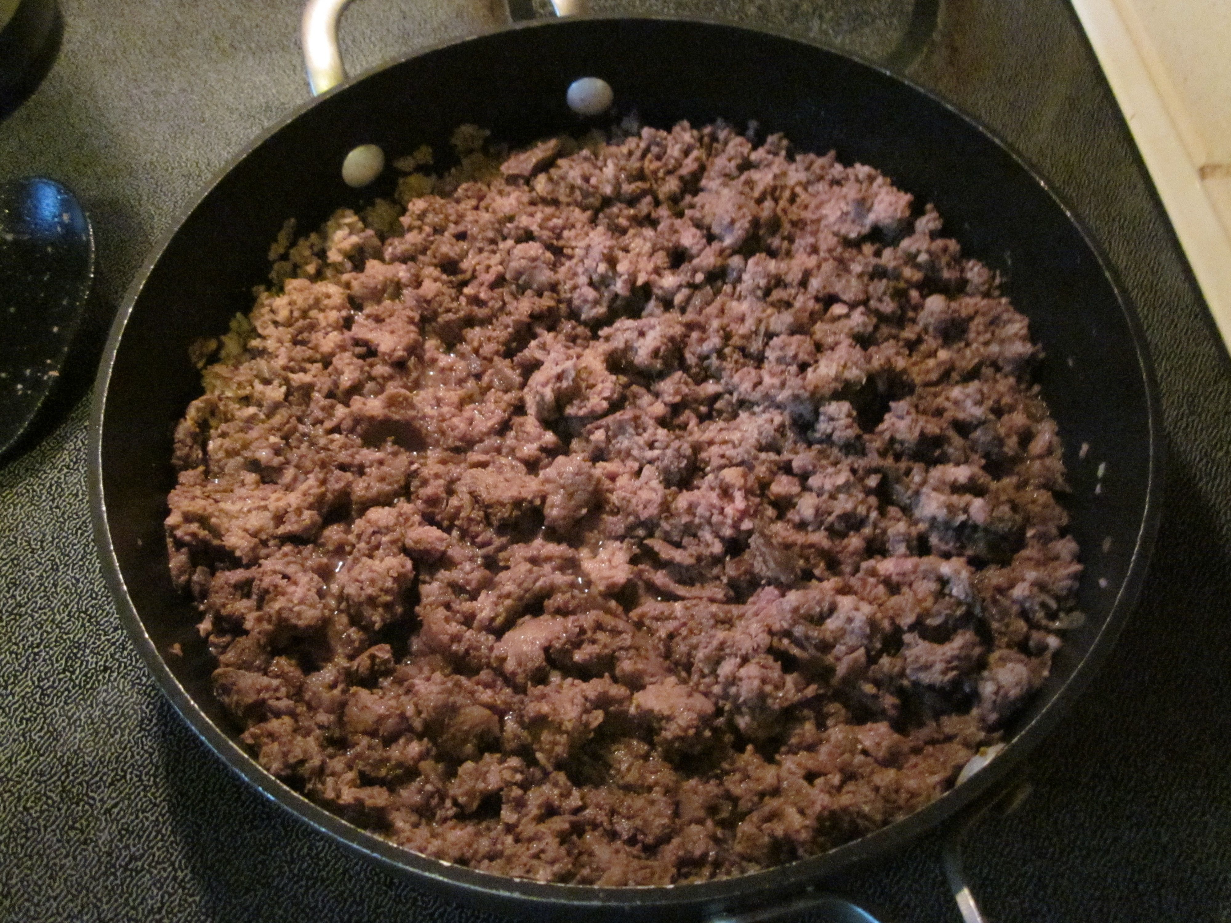 Brown hamburger and drain.