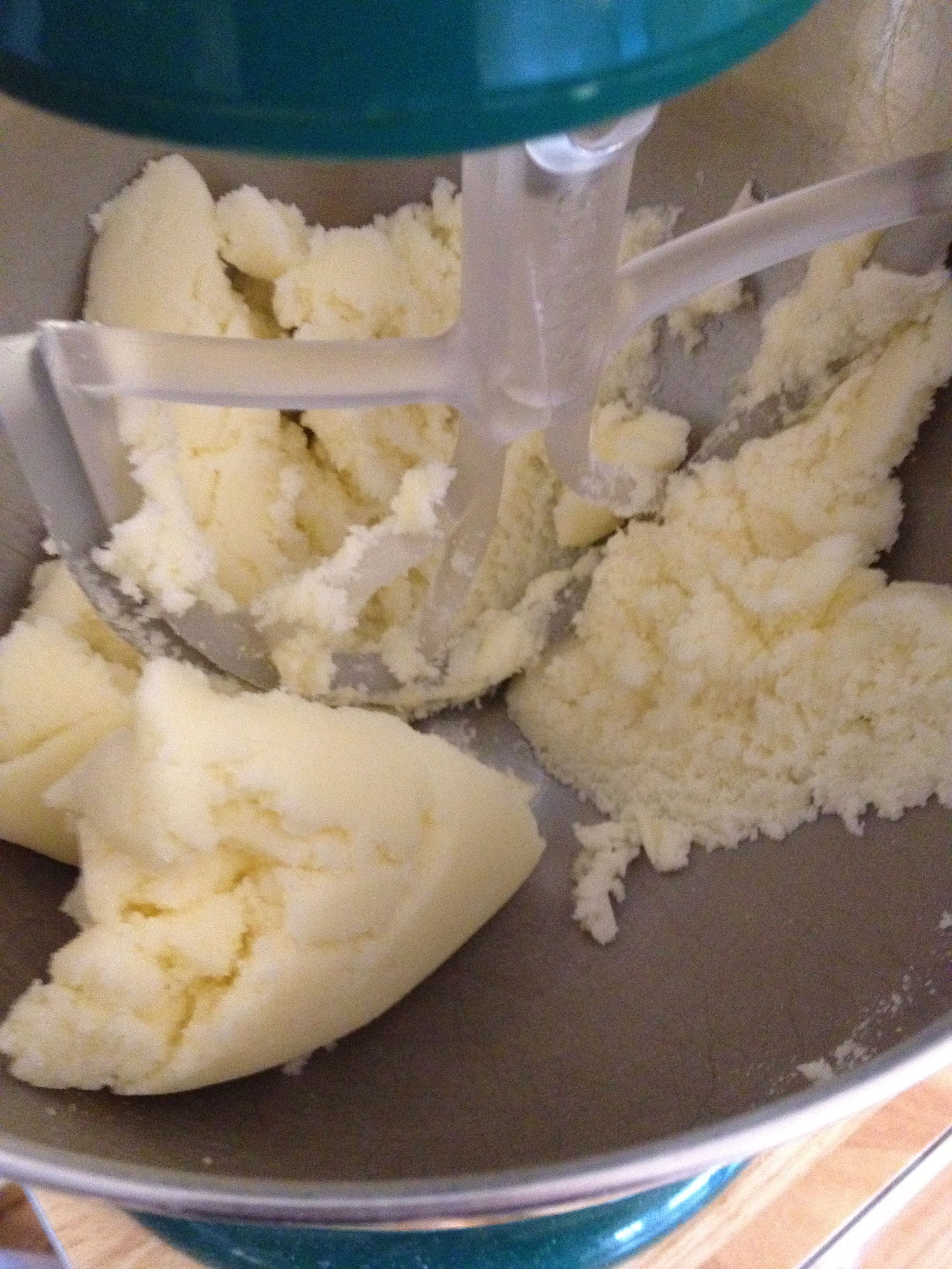 Take out the eggs and butter and let them get to room temperature (about 1 hour). In a mixing bowl, cream the butter and sugar.