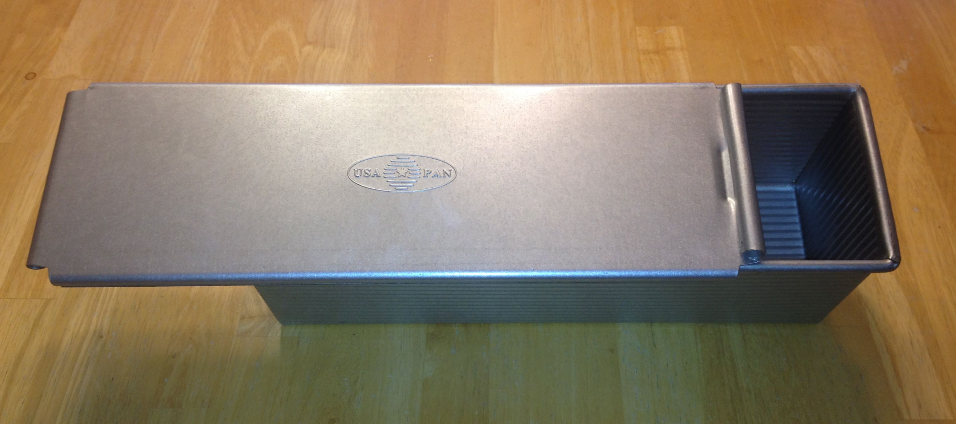 I like baking this in a Pullman loaf pan that has a lid. The first loaf (back) I left the lid off for about 70 minutes then put it on the last 20 minutes.